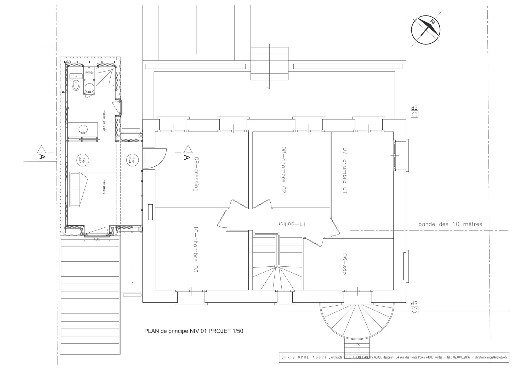 Simple but interesting, this is what Christophe Nogry wants to display on the project of expanding the volume of old houses in the city district of Nantes, France. In this project, Nogry was tasked with expanding the new living room, dining room, and master suite by building an extension in the front yard of the client's house.